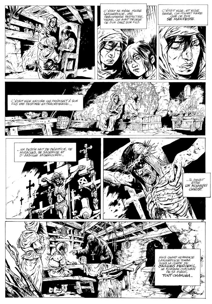 Voici une intégrale de la plus hémoglobineuse des bd sur le sujet de la foi chrétienne qui compte les 4 tome édité par dupuis. D'emblée en ouvrant la premiere de couverture vous serez agréablement surpris de découvrir un ex-libris tenant au cahier et imprimé sur papier gros grain de toute beauté.