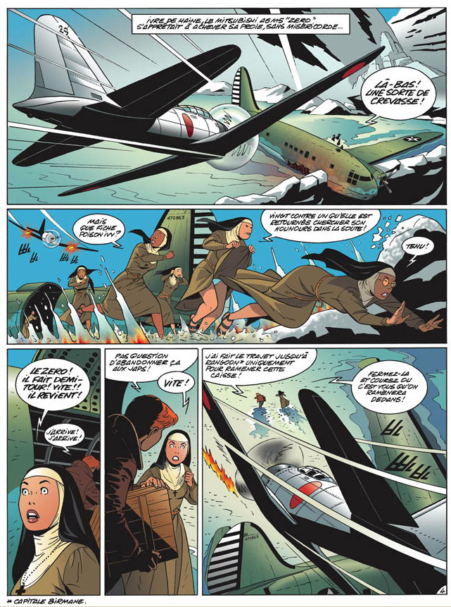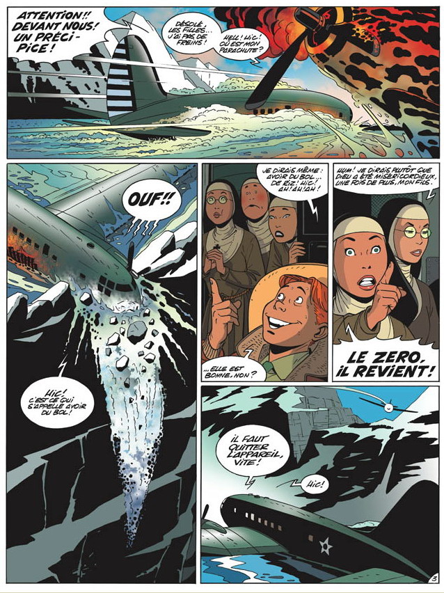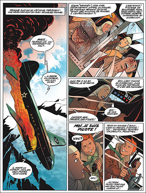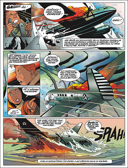 Mais le but de cette BD n’est probablement pas de faire dans le réalisme donc, savourons allègrement ce pilote d’avion qui ressemble furieusement à Sonny T(r)uckson, d’ailleurs même le titre de la série ne fait-il pas référence à la série Buck Danny grâce à son titre Les Tigres volants (volume 4), au nom des pilotes Buck Kennes, Tumbler Gendrot.