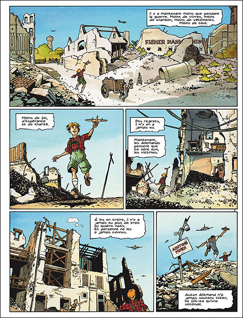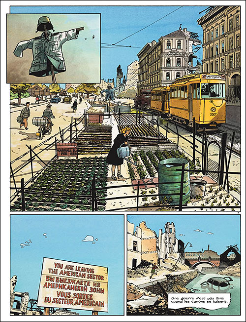 Berlin, une ville bombardée par les soldats anglais, puis occupée par l'Union soviétique et, finalement, disloquée par le Mur. Le fil rouge entre les trois albums de cette bande dessinée, c'est la Deuxième Guerre mondiale. Mais au-delà du récit historique et presque documentaire des événements, ce sont des vies d'hommes et de femmes pris dans cette Histoire qui nous sont contées.