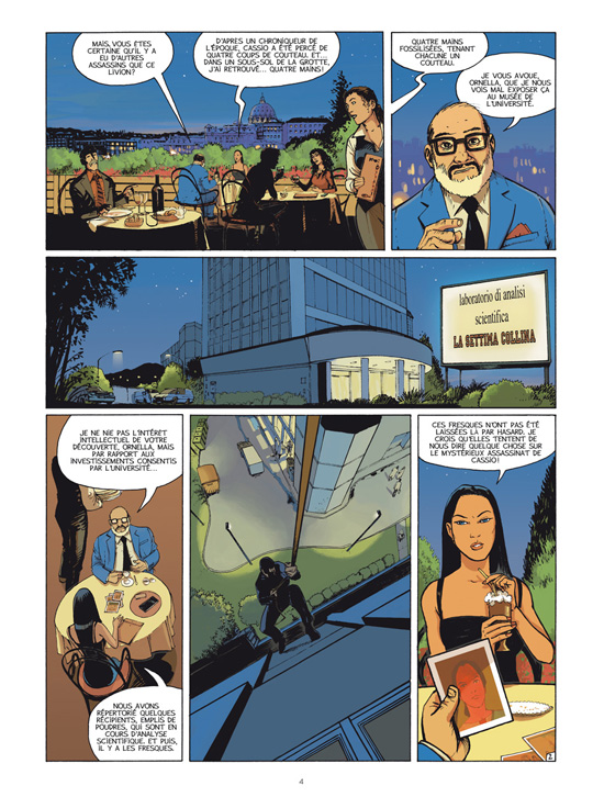 Près de deux mille ans plus tard, l’enquête commence. L’archéologue Ornella Grazzi découvre des parchemins de la main de Cassio. Elle cherche, page après page, à dévoiler les visages des quatre meurtriers.