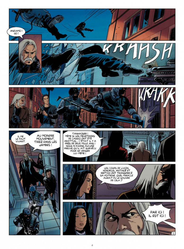 Stephen Desberg et Henri Reculé clôturent en beauté avec ce neuvième tome le scénario d’une aventure débutée en 2007. L’ensemble des éléments composant le secret de l’immortalité de Cassio et de son frère sont dévoilés dans cet opus. De la mère de Cassio revenant du royaume des morts, des différentes poudres utilisées tout au long de l’histoire, plus rien ne sera secret pour les lecteurs. J’aime particulièrement le passage proposé par nos deux créateurs concernant les désavantages de l’immortalité du héros mais surtout les flashbacks sur toutes les femmes que celui-ci a aimées tout au long de son existence illustrant la souffrance vécue lors de chaque séparation. A posséder impérativement.