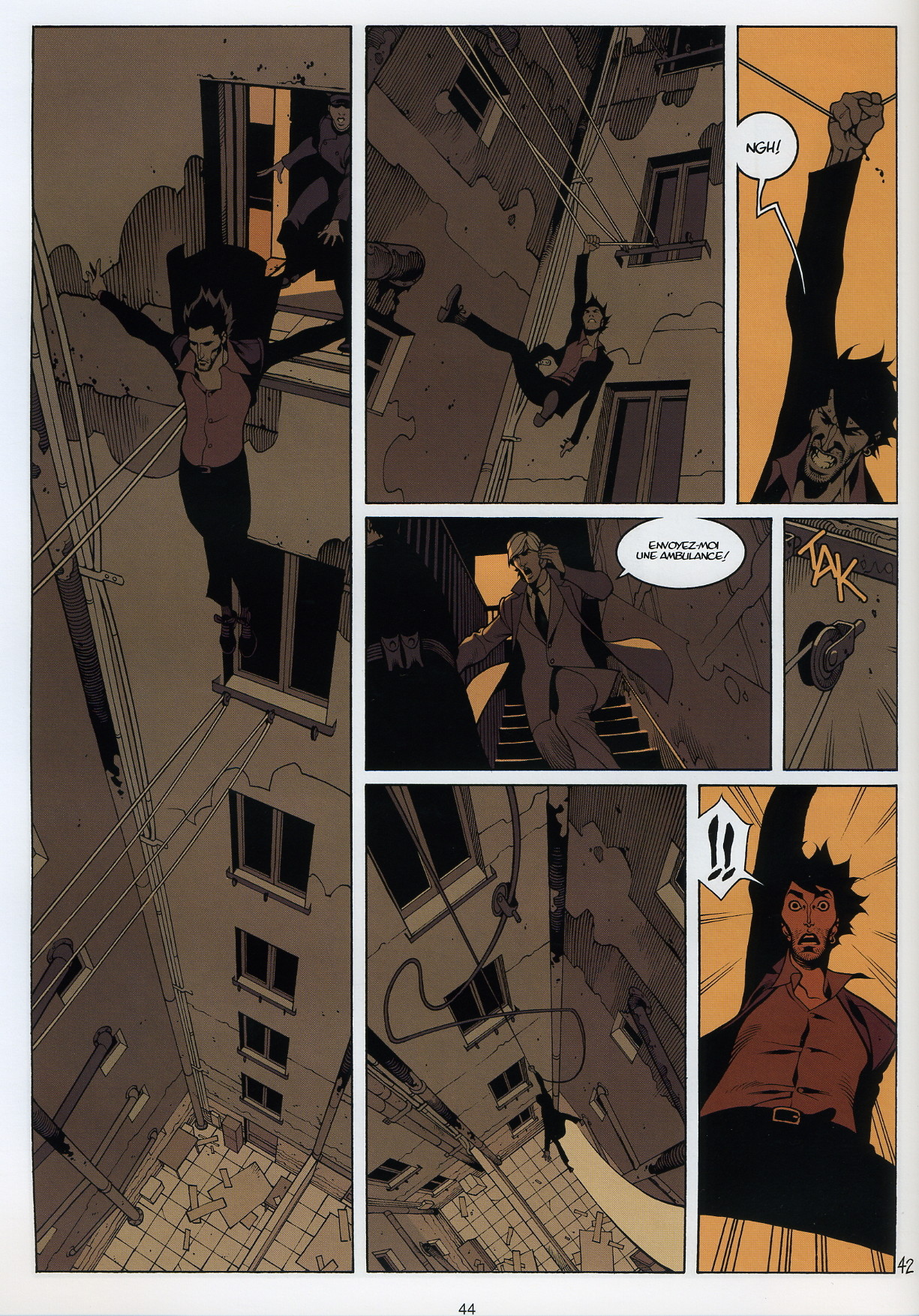 Comme vous l'aurez compris Jazz Maynard est un polar bien sombre dans l'histoire mais également dans le visuel. Les planches sont toutes dans des dégradés de noir, gris, brun, créant une ambiance glauque et lourde. Le dessin de Roger est très accrocheur, anguleux, avec un encrage très poussé et de nombreuses zones d'ombres. Sans aucun doute l'auteur a du observer le travail des grands auteurs américains Je serais très curieux de voir ses planches originales en noir et blanc pour admirer la force de son encrage. Le découpage est ultra dynamique ajoutant vie et rapidité au scénario.