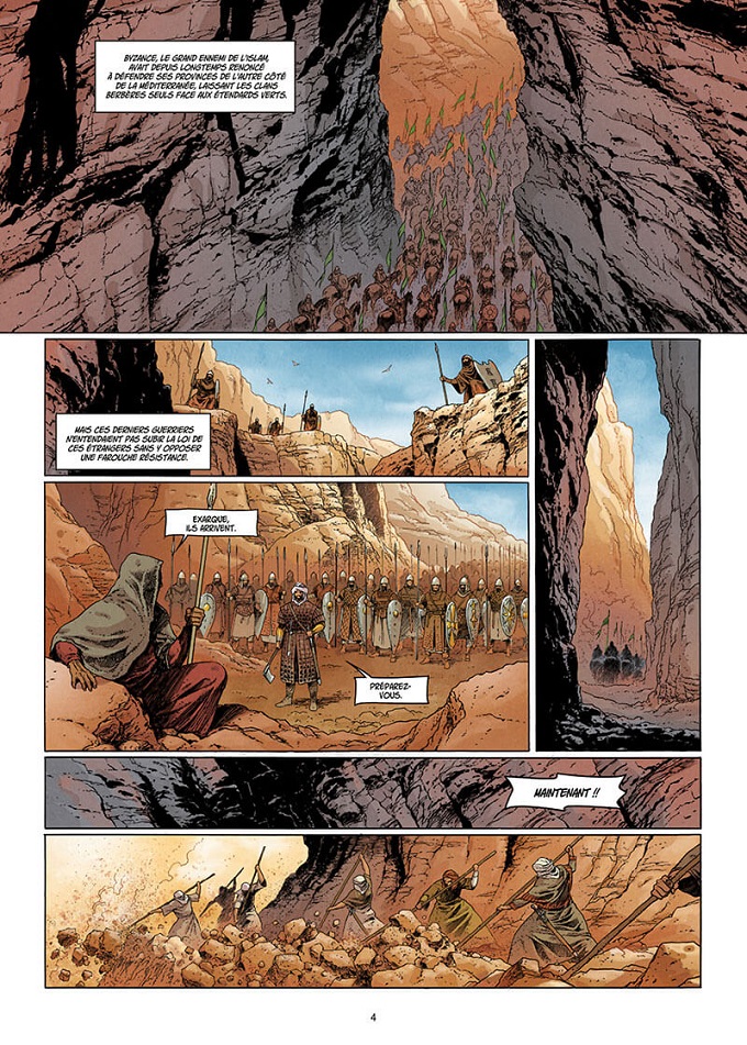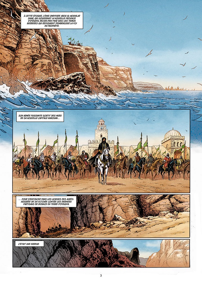 A Alexandrie, la nouvelle du désastre des Gorges des Aurès fait exploser de rage Mu’awiya, premier calife de la dynastie des Omeyyades. Il ordonne de lever une nouvelle armée et de venger cet affront ! 10 longues années de guerre s’annoncent …