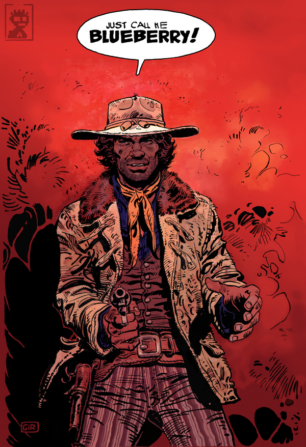 En 1963, Jean-Michel Charlier cherche un dessinateur pour un western à paraître dans Pilote et propose à Jean Giraud d'en devenir l’illustrateur. Ainsi commencent les aventures du fameux lieutenant Blueberry, dont le très grand succès en a fait un classique du genre. Jean Giraud signe les planches de cette série du diminutif de Gir, mais son nom complet apparaît sur la couverture des albums. La saga de Blueberry compte vingt-huit albums ainsi que deux séries dérivées (quinze volumes) : Marshall Blueberry (Jean Giraud, William Vance & Michel Rouge) et La Jeunesse de Blueberry (Jean Giraud, Colin Wilson & Michel Blanc-Dumont).