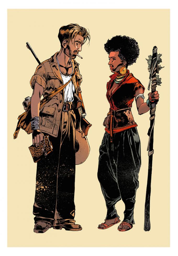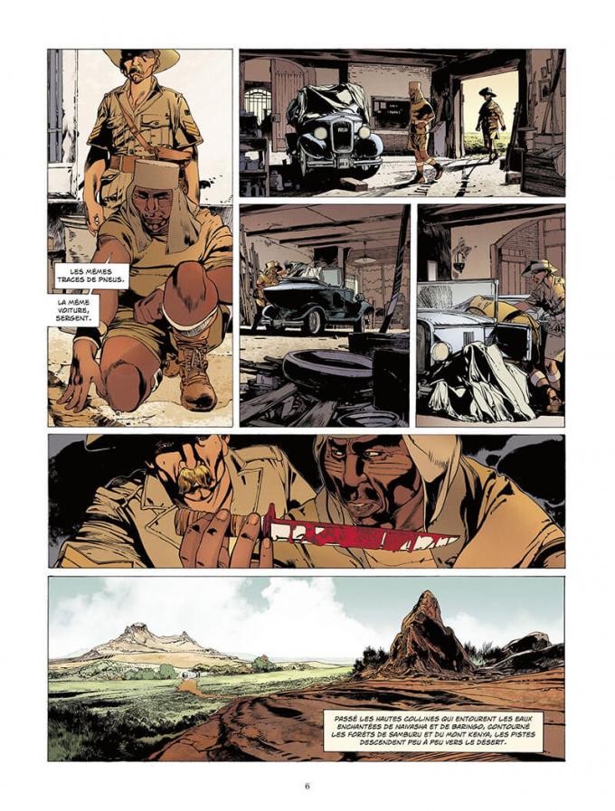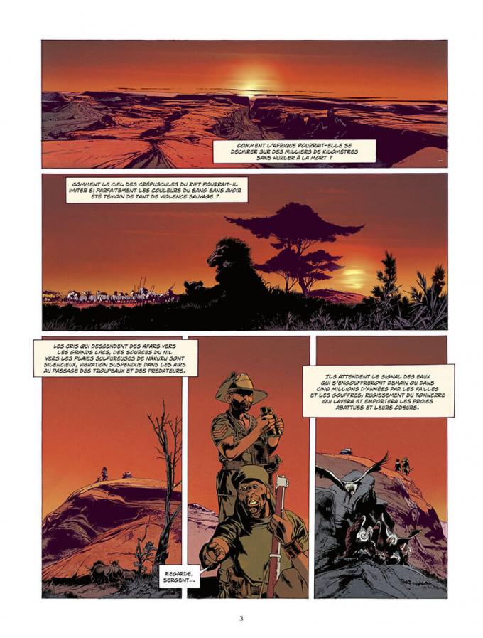 Les lieux sont familiers pour Desberg depuis Jimmy Tousseul, classique des années 90 du catalogue Dupuis dépeignant à hauteur d’enfant un décolonialisme inéluctable. Ici, l’époque est plus ancienne. Nous sommes dans les années 20. Mais l’atmosphère africaine transpire à travers les images et les mots. Le scénariste prend la main dans de nombreux récitatifs, méthode qu’il emploie également dans le récent Oliver Page avec Griffo.