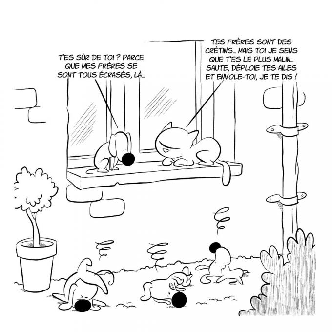 Le trio Baba-Tartuff-Lapuss’ se place à hauteur canine, comme si chacun d’eux était capable d’aboyer, de perdre ses poils, de rattraper un bâton ou de remuer de la queue. A lire la série Bon chien !, ils savent bien faire tout ça. Inside dog brain. Soit ils sont la réincarnation de chiens, soit ils ont voyagé à l’intérieur de leurs cerveaux, un peu comme dans le film « L’aventure intérieure ».