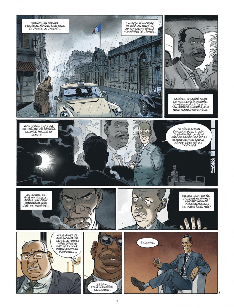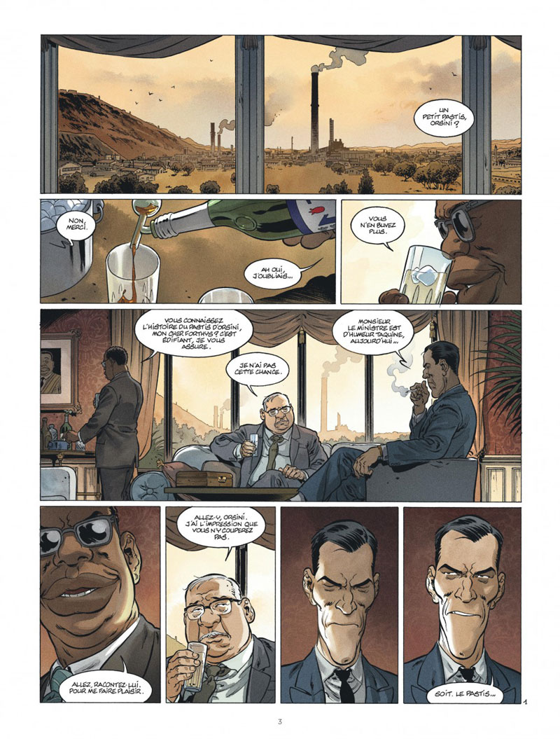 « Katanga » emmène le lecteur aux confins de la cruauté humaine. Dans cette série, il n’y a pas un personnage pour rattraper l’autre. C’est un véritable ramassis de pourritures, un aéropage de corrompus qui se côtoient dans la France-Afrique des années 60. Dans « Katanga », on empoisonne, on tue, on baise, on égorge, sans vergogne et sans scrupule. Il y a du Tarantino dans le scénario de Nury. La violence est si présente qu’elle en devient presque naturelle.