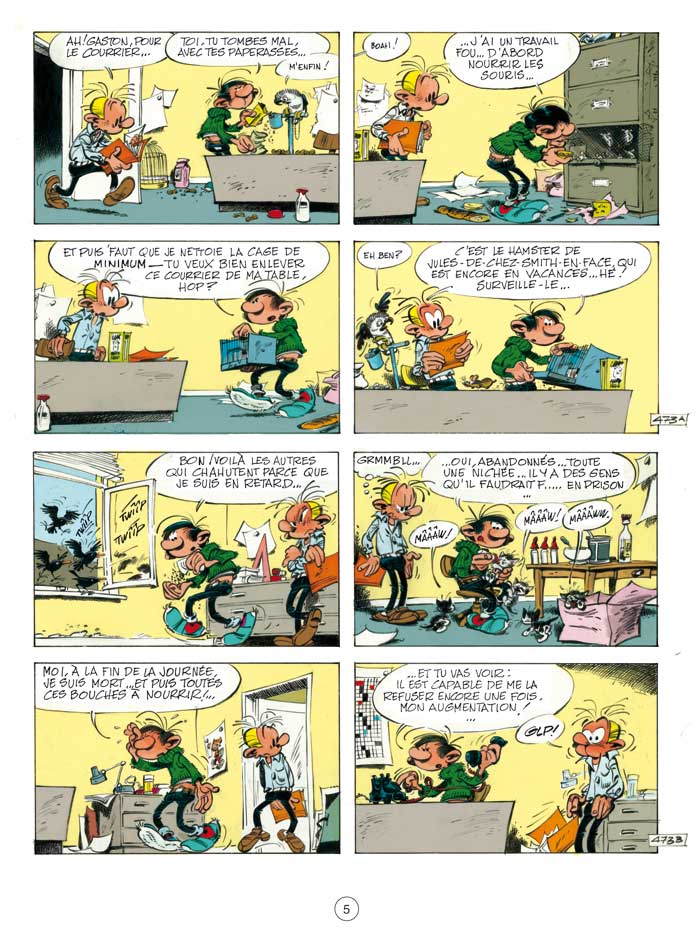 Chat dingue, mouette rieuse, singes de cirque et homard rescapé peuplent l'univers de Gaston, gaffeur invétéré et grand ami des bêtes. Parmi celles-ci, le chat occupe une place de choix : sournois, griffu et chapardeur, il est la bête noire de la rédaction et de M. de Mesmaeker en particulier...