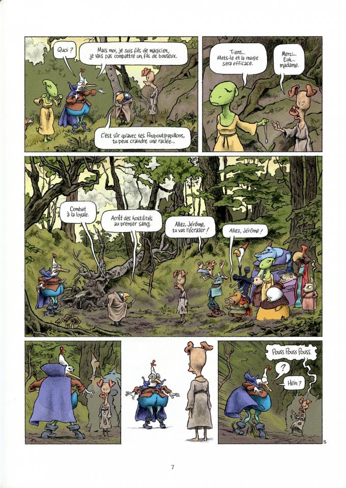 Un Donjon Potron-Minet et un Donjon Monsters, voici la double dose qui vient enrichir l’univers créé par Joan Sfar et Lewis Trondheim. Donjon Potron-minet revient après quatorze ans de sommeil. Stéphane Oiry succède à Christophe Blain et Christophe Gaultier. Le dessinateur avait déjà travaillé avec Lewis Trondheim sur la série polar atypique Maggy Garrisson. Il ne force pas son trait et s’intègre dans la famille Donjon naturellement. Il n’y a qu’avec Grogro qu’il semble moins à l’aise, ne réussissant pas vraiment à se l’approprier. Juan Saenz Valiente, alias Juanungo, est un dessinateur argentin. Son graphisme est moins proche de l’univers habituel du Donjon mais il s’intègre parfaitement à Monsters. Ses personnages sont drôles au premier regard. En particulier le poulet Jérôme est inoubliable.