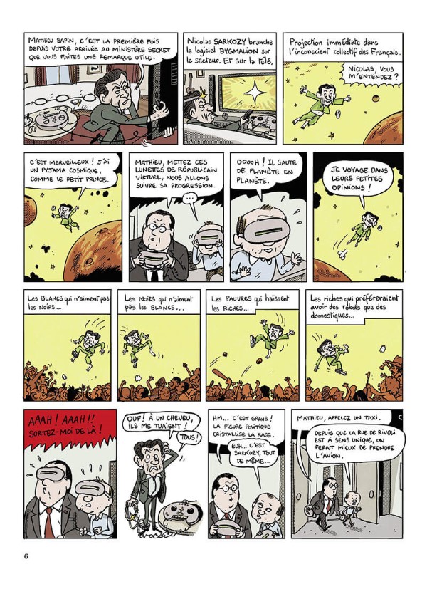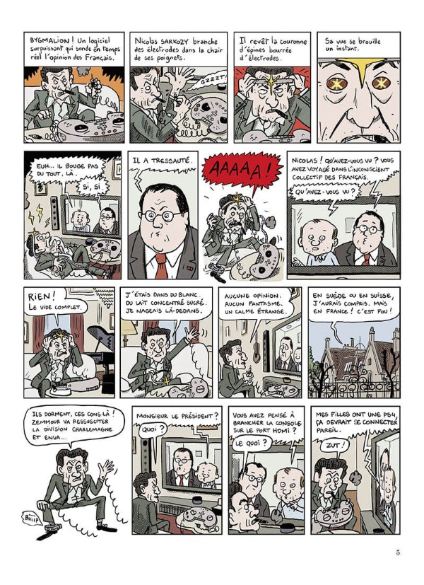 Septembre 2021. A quelques mois de la présidentielle française, François Hollande craint ce qu’il pourrait se passer. Il en fait part à Mathieu Sapin qui a jadis suivi sa campagne électorale. C’est alors que surgit Nicolas Sarkozy, agacé par son bracelet électronique à la cheville. Les deux anciens présidents font partie du ministère secret, chargé de protéger la France des menaces qui pèsent sur elle et qui doivent rester cachées aux yeux de la population. Le logiciel Bygmalion va permettre à Sarkozy de se projeter dans l’inconscient collectif des français. L’ex-chef de l’état va se rendre compte que le racisme, l’intolérance et la haine sont dans les esprits. Ça pourrait ouvrir la porte à Zemmour. De son côté, alors que l’on croyait qu’Alexandre Benalla roulait pour Macron, on apprend qu’il bosse en fait pour le ministère secret. Alors quand il va apprendre qu’il est soupçonné de liens avec des oligarques russes, il va devoir prouver le contraire, d’autant plus que Le Pen, Zemmour et Mélenchon, entre autres, ont une puce russe dans le derrière.