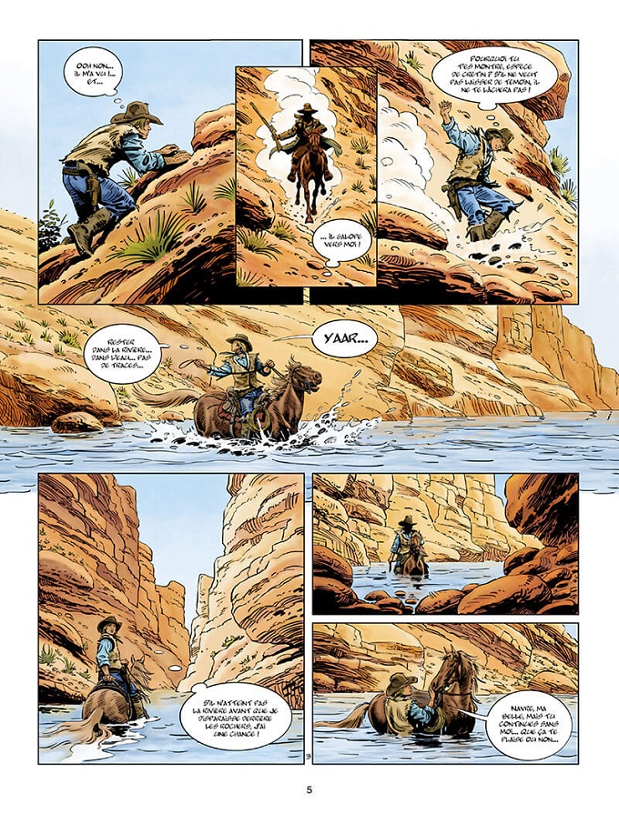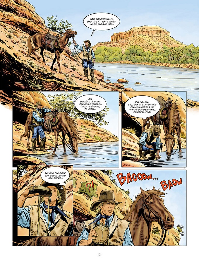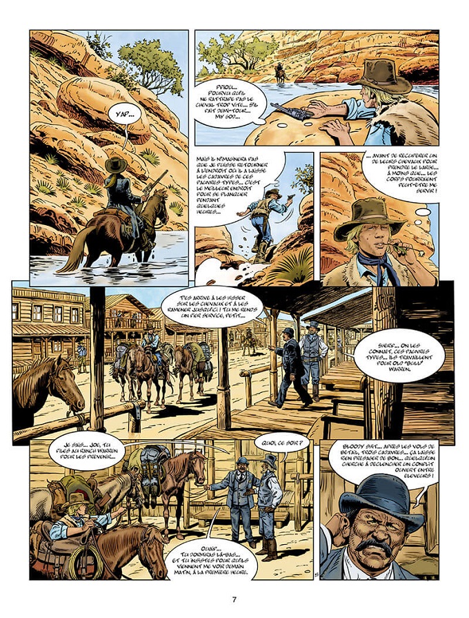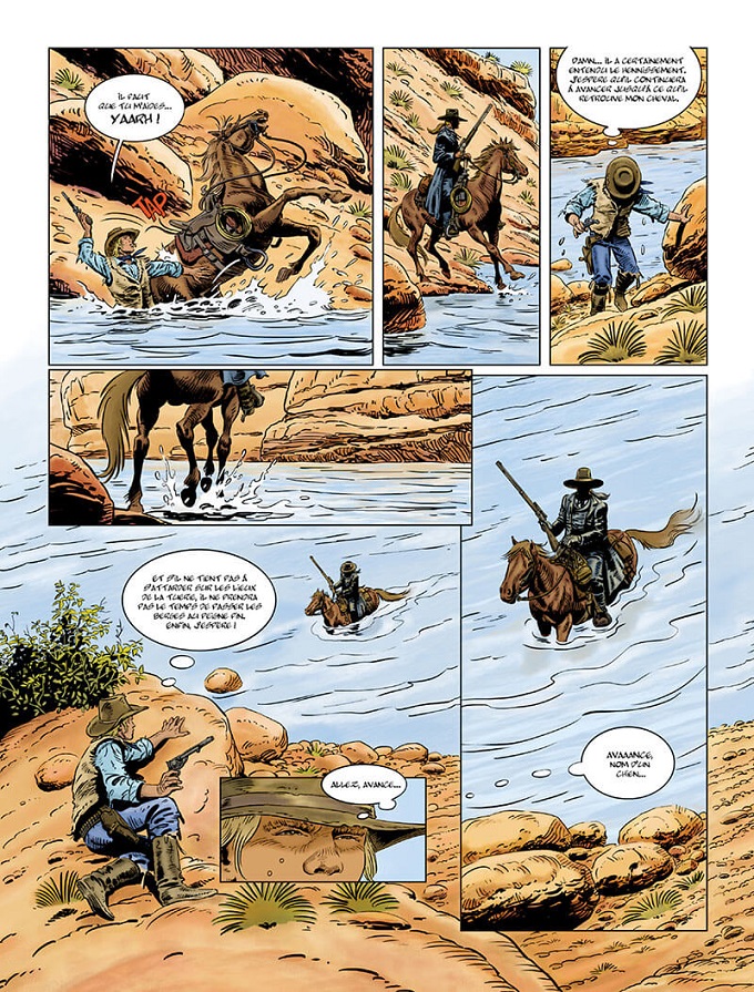 Un crayon capable d’entrer dans l’univers western hyper réaliste d’Yves, avec notamment le respect pour son trait, ses visages (mais au fait celui du jeune Durango, voire de Samuel Belvins me font penser à quelqu’un ! Je dois me faire des idées !), ses décors et espaces grandioses, ses chevaux, … Et quitte à trouver la perle rare, Yves Swolfs va s’associer à Roman Surzhenko. Ayant déjà prouvé son immense talent avec les 18 tomes de « La jeunesse de Thorgall », tiens un autre spin-off, il se plonge ici dans ce nouvel univers avec succès et éclat.