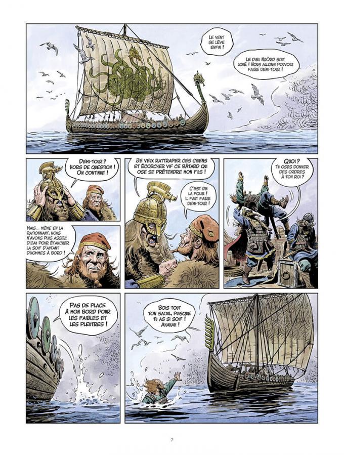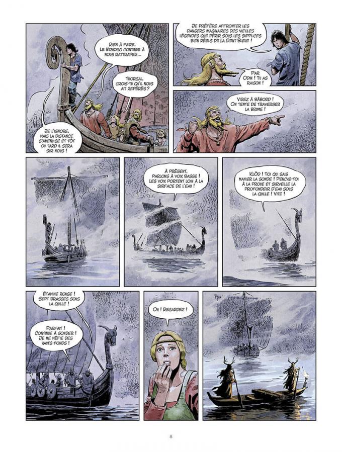 C’est déjà le neuvième épisode de la jeunesse de Thorgal et, le moins que l’on puisse dire, c’est que ça aurait pu être une histoire du Thorgal adulte. Le récit de Yann, des plus classiques, aurait très bien pu être attribué au plus vieux Thorgal. Les afficionados de l’univers du viking ne seront pas déçus, bien qu’il y ait des moments décousus dans le récit de Yann, avec quelques passages abrupts mais qu’on lui pardonne parce que, comme l’enfant des étoiles, le lecteur retombe toujours sur ses pieds. Dans le monde machiste et mysogine des combattants du Nord, le scénariste assène un message féministe moderne donnant une belle leçon d’indépendance. Yann envoie même un clin d’œil au chantre du scénario d’heroïc-fantasy gros bras Arleston.