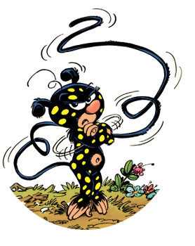 Oui, j’imagine. Je ne sais pas exactement ce qui se passe dans le cerveau du scénariste. Dès qu’il a un début d’histoire, il me la raconte et on échange, je rebondis sur certains aspects. Ici, j’aurais tendance à dire qu’il m’a eu. Je lui avais dit que lors de séances de dédicaces des lecteurs me demandaient quand est-ce qu’il y aurait un Marsupilami noir à tâches jaunes. Je leur répondais : « Vous êtes fous. ». Imaginez le défi graphique. L’idée était peut être à retenir pour une sérigraphie ou que sais-je.