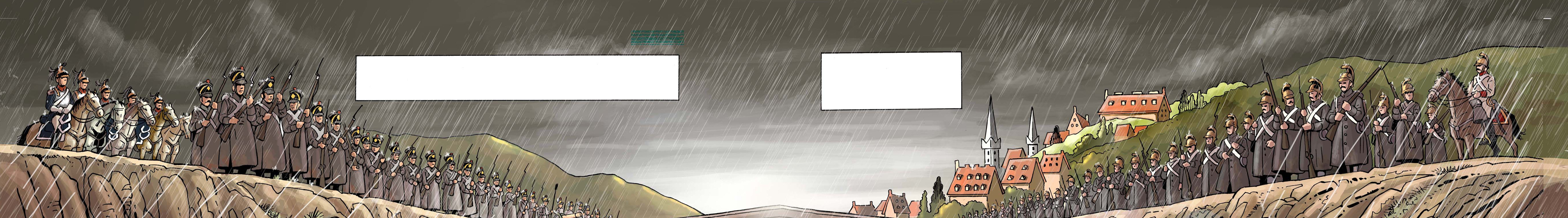 Je dois vous faire un aveu… Si ces batailles ont bien eu lieu, certaines scènes ne sont pas toujours réalistes. La raison est simple. J’ai utilisé des astuces de narration dans mes albums précédents pour servir le récit. Exemple : la double planche 10-11 se lie de haut en bas et de droite à gauche, mais ce n’est pas uniquement pour des raisons esthétiques. Cela m’a permis de raconter cette affaire en un minimum de page. Et ce, afin de conserver un bon rythme, éviter les lourdeurs, tout en offrant une scène spectaculaire au lecteur. D’autre part, en procédant ainsi, j’ai pu gagné entre 4 à 6 planches pour permettre à notre espion d’accomplir sa mission en 46 pages. Concernant les uniformes, lorsqu’il y avait un doute, j’ai fait appel à des amis historiens ainsi qu’à des reconstituteurs.