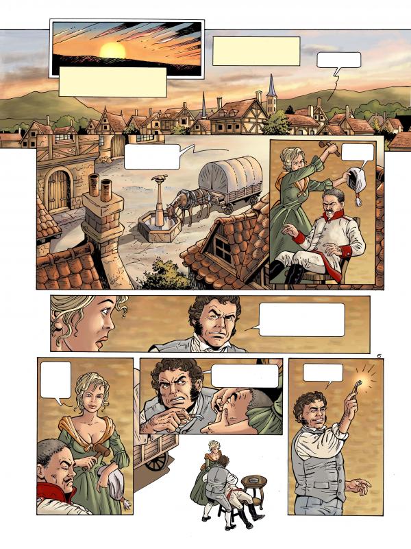 Merveilleusement bien ! Sibin est un réel professionnel, très à l’écoute. Il n’en est pas à sa première bande dessinée. Il a œuvré avec le grand Hermann pour la BD Franco-Belge, le fumetti chez Bonelli et le comics avec Tarzan. Notre rencontre s’est faite par l’entremise de son agent, Csaba Kopeczki. Nous travaillons ensemble depuis des années avec toujours le même plaisir et une confiance absolue. Je lui ai demandé s’il avait un dessinateur intéressé par le 1er Empire. Il m’a parlé de l’excellent Sibin. Il n’a pas fallu longtemps pour que je tombe sous le charme de ses planches. Le fait que nous ne parlons pas la même langue n’a pas été un frein à notre collaboration. Csaba lui a traduit le scénario en Serbe et nous avons communiqué en anglais. En revanche, nous ne nous sommes jamais rencontré tout au long de la réalisation de l’album. Héloïse Dautricourt a assuré le suivi du tome 1 pour les éditions Joker avec une grande attention, des conseils avisées et beaucoup de professionnalisme. Toutes les planches encrées en noir et blanc ont été déposées sur le serveur ftp de l’éditeur. Il ne restait plus qu’à Véronique Gourdin de les coloriser avec le talent que nous lui connaissons.