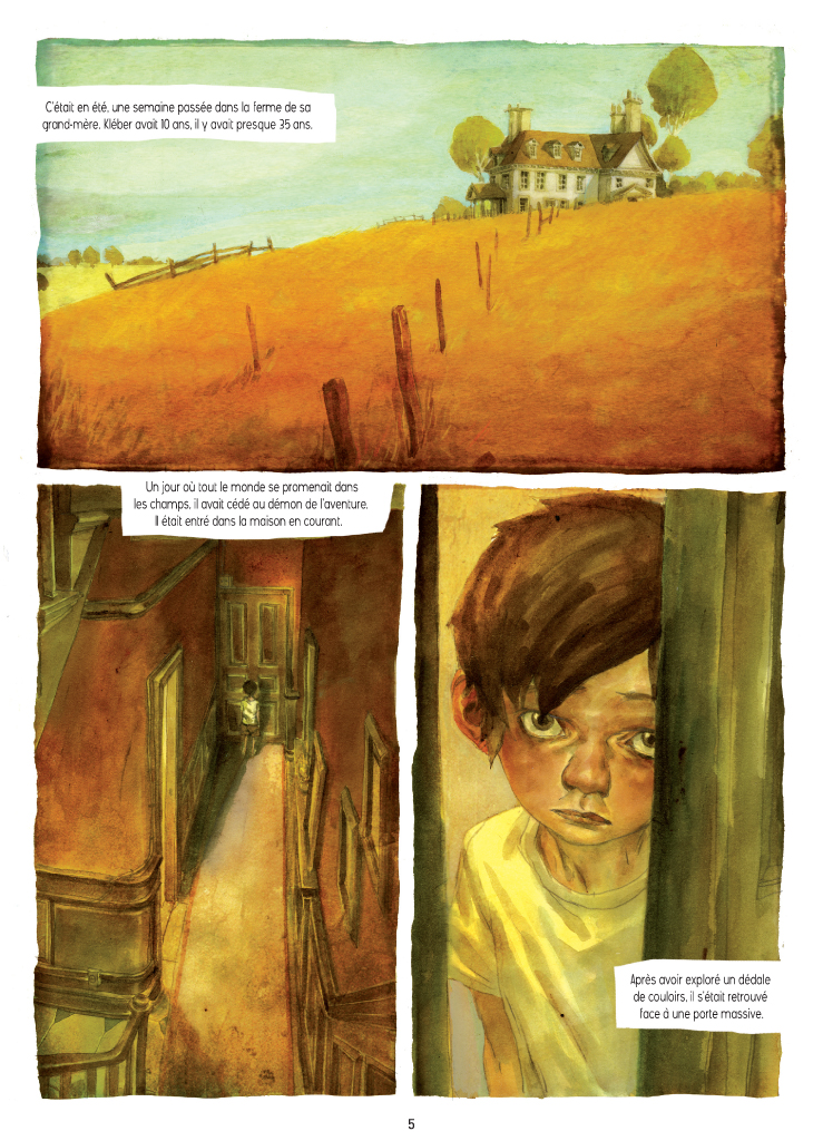 Je ne sais si ça se perçoit comme ça, mais moi j'avais envie de mettre en avant un côté « esquisses » que je n'avais pas encore exploité. J'ai essayé de conserver le plus de spontanéité possible, de livrer quelque chose de direct, de brut. Pour les couleurs aussi, l'aquarelle et le crayonné, pas d'encrage... Pour moi c'était nouveau, mais ce qui semble le plus simple est parfois le plus compliqué...