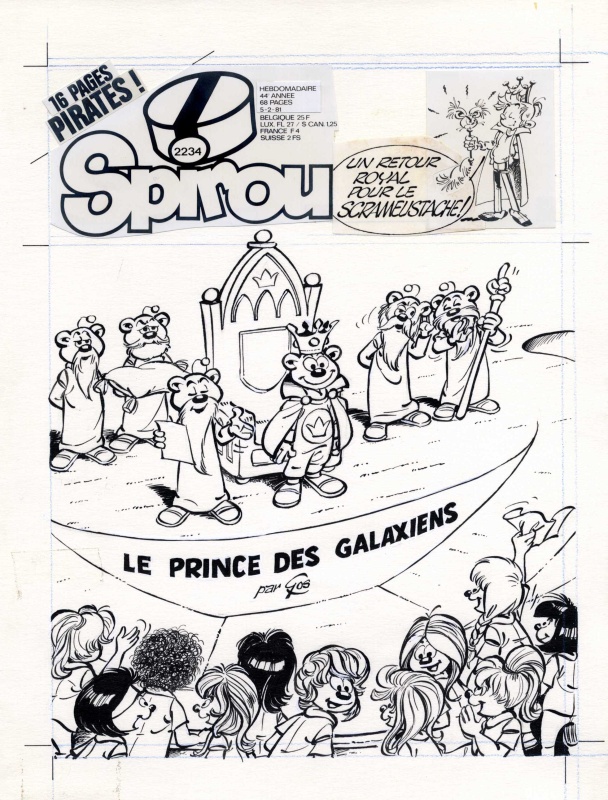 Pour Khéna, oui, dès le premier épisode, mais pas plus. Pour expliquer comment est né le Scrameustache, c’est venu au fur et à mesure des histoires. L’histoire de Scrameustache vient du rédacteur en chef de Spirou à l’époque qui m’a dit un jour : “Mais le Scrameustache, ça veut dire quoi, d'où vient-il”. Ça a fait tilt et le lendemain j’avais tout mon scénario du tome 18. Pour tous les épisodes précédents ou suivants, la plupart du temps, ça vient d’une réflexion, la vue d’une image quelque part. Je me dis que je pourrai peut-être faire ci ou ça. Mais alors je suis parti d’un grand principe que m’avait donné Franquin : “Si tu ne veux pas t’embêter dans tes histoires, à part tes deux héros principaux, amène régulièrement des gens, des inconnus, qui peuvent apporter un plus”. C’est comme ça que sont arrivés les Galaxiens dans la série. Ils étaient d’ailleurs les premiers croquis du Scrameustache. Comme ça n’allait pas, ils étaient trop nus. Comme j’aime beaucoup les chats, j’ai fait un Scrameustache qui ressemble à un peu à un chat.