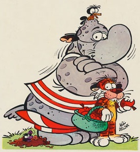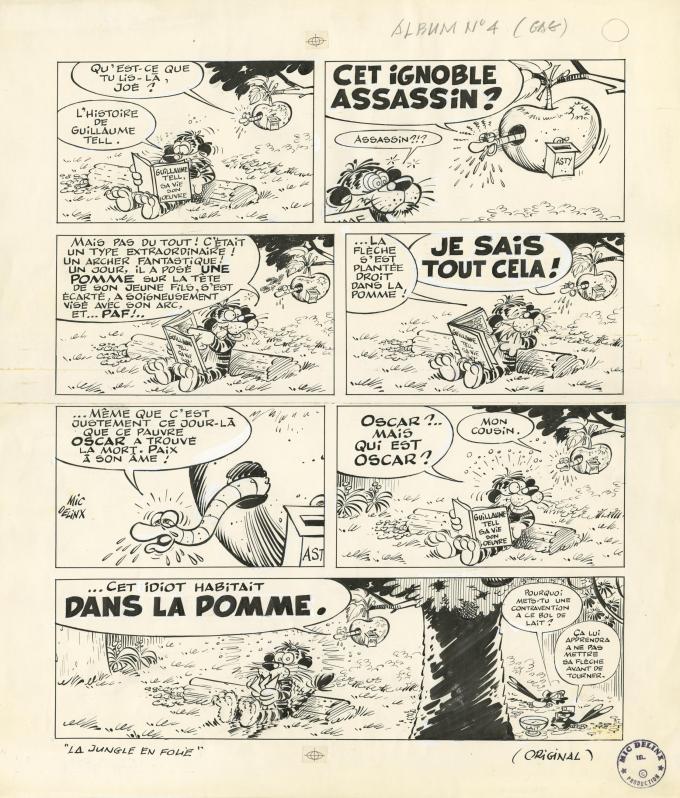 Avec Mic Delinx, on a travaillé près de vingt ans ensemble, en plus ou moins bonne harmonie pendant dix ans et puis il m’a fait un coup comme il avait fait à Goscinny dix ans plus tôt. On a continué à travailler ensemble. Par contre, je l’avais prévenu que je ne voulais plus le voir, même le croiser dans l’escalier, et que s’il changeait un seul mot dans les textes que j’écrivais, je cessais tout travail avec lui. Pendant notre deuxième décennie de partenariat, on ne s’est plus jamais revus. Cette collaboration assez curieuse, sur le plan du lectorat, fonctionnait admirablement bien. Et puis un jour, je vais chez Dargaud, j’avais à faire avec la responsable financière du journal, elle me dit : “Dites-donc, vous savez qu'à la SACD il y a un énorme dossier sur le bureau de l’avocat qui se charge de monter des dossiers pour des collaborations ?”. Je lui réponds que j’ignorais totalement pour quelle raison il y avait cet énorme dossier à la SACD de la Jungle en folie et que j’allais me renseigner. J’ai rencontré l’avocat en question, qui était un avocat conseil qui recevait les auteurs et qui les aidait en quelques sortes à monter des opérations en passant par la SACD. Il m’explique ceci : “L’opération est bloquée parce qu’il y a une firme qui voudrait faire des dessins animés avec La Jungle en folie mais Mic Delinx dit qu’il en est l’auteur, le seul. Ils ont regardé les albums et ont vu que déjà sur les dix premiers albums deux noms figuraient. La firme de dessins animés a donc demandé à Mic Delinx que son co-auteur déclare qu’il n’est pas concerné par le projet de faire des dessins animés avec La Jungle.” Cela faisait des mois et des mois que ça durait et je n’étais pas au courant. Je prends donc rendez-vous avec la firme de dessins animés qui était française. Le directeur général me dit que, effectivement, Delinx prétend qu’il est le seul auteur alors que mon nom apparaît sur les albums. Je lui dis que j’en suis bien le coauteur et que je suis prêt à signer tout de suite. J’ai pris connaissance des conditions de contrat. Je suis d’accord, si je suis reconnu coauteur à 50/50 je signe immédiatement. Mic Delinx n’a pas voulu et les dessins animés ne se sont jamais faits. C’est une des raisons qui ont fait que j’ai refusé de continuer à travailler avec lui, et c’est aussi une des raisons pour laquelle il n’a plus jamais rien fait dans le domaine de la bande dessinée.