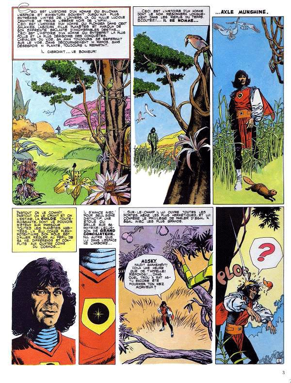 « C’est l’histoire d’un homme qui sillonna l’espace jusqu’aux plus extrêmes limites de l’univers, plongea dans cent galaxies, et laboura le destin de mille planètes… Son nom résonnera longuement dans les replis du temps… Ecoutez !... Il se nomme… Axle Munshine ! ». Dès la parution du premier album chez Hachette en 1975, la maquette de la série est caractérisée par un petit texte en haut sur la couverture. Ce concept restera immuable. Est-ce vous qui en avez eu l’idée ?