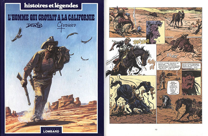 Derib, un charmant garçon, m’avait contacté. Ça a été une expérience pure et simple pour voir ce que l’on pouvait faire tous les deux dans le domaine du western à la John Ford. C’était un recueil d’histoires complètes qui avaient été prépubliées dans le journal Tintin. J’aurais personnellement renouvelé l’expérience avec beaucoup de plaisir mais Derib ne le souhaitait pas. Il n’avait pas très envie d'avoir un auteur qui en profitait pour s’exprimer lui-même si je puis dire. L’album a été pas mal remarqué. Je m’étais exprimé dans chaque histoire dans un registre assez dur et différent à chaque fois. Il a été étudié jusqu'à l’université en Russie.