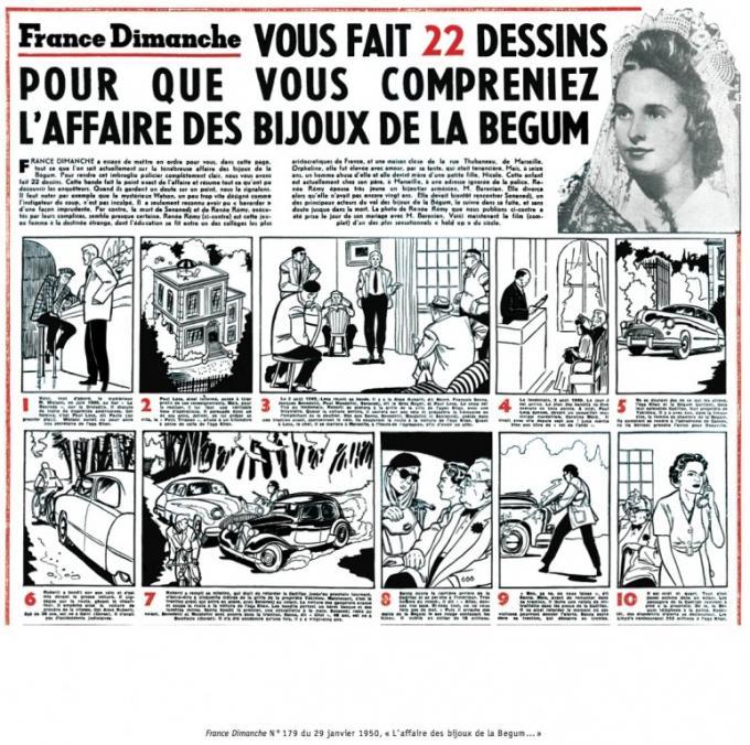 Vous savez, entre Uderzo et moi, il n’y a pas une grande différence d'âge, 5 ans tout au plus. Quand j’étais gamin, à l’époque où je lisais beaucoup d’illustrés, que j’achetais généralement d’occasion parce qu’il y avait un marchand pas très loin qui en vendait, j’avais remarqué un dessinateur qui me laissait pantois par son talent. Uderzo faisait tout ce que l’on voulait bien lui demander. Il faisait du dessin humoristique et du dessin réaliste. J’avais donc fait des dossiers dans lesquels je collectionnais tous les dessins de cet auteur. Je ne le connaissais pas du tout à cette époque-là où, en quelque sorte, on commençait à remarquer la qualité de ce qu’il faisait. On lui avait confié l’intégralité de la dernière page de couverture de France Dimanche. Il était chargé de faire les illustrations autour des faits divers qui s’étaient passés au cours de la semaine. Ses dessins étaient accompagnés d’articles. Moi, je classais très soigneusement tout ce qu’il publiait. Il me fascinait. J’étais persuadé qu’il était célèbre et très entraîné dans le métier qui était le sien car il était capable d’adopter n’importe quel style.