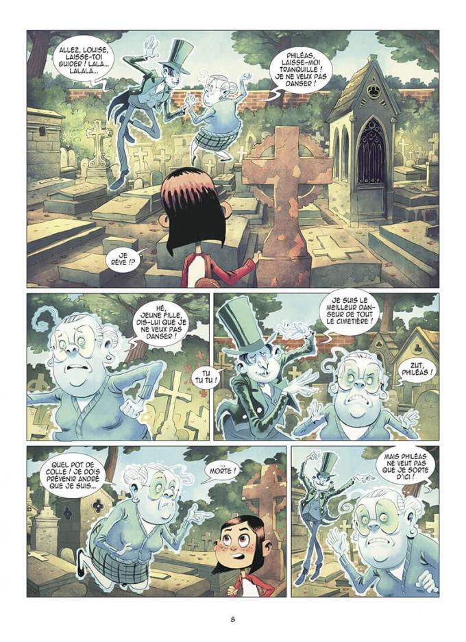 Tim retrouve sa petite sœur Sam en plein milieu du cimetière, sur la tombe de leur père. Elle fait ses devoirs à côté de lui. L’enfant est à la charge de son grand-frère depuis qu’ils sont orphelins, mais l’assistante sociale veille et va venir vérifier si Tim est bien apte à s’occuper de sa sœur. Il vient de perdre son job et n’a pas l’intention de la perdre. Alors qu’il s’apprête à la ramener à la maison sur son scooter, Sam assiste à une conversation entre deux fantômes. Elle seule les voit. Philéas, haut de forme et tiré à quatre épingles, veut inviter Louise, grand-mère dans la force de l’âge, à danser. Ce n’est pas du goût de l’ectoplasme qui demande à Sam de la sortir de là et de l’aider à retrouver son époux André.