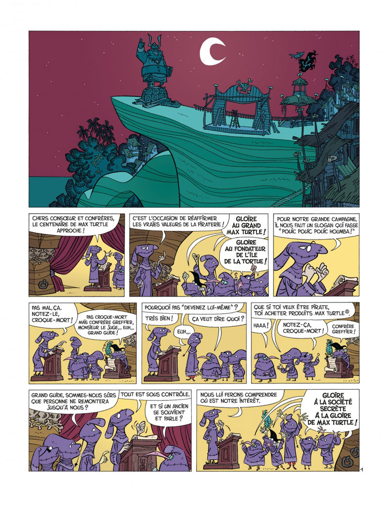 Tous les ingrédients qui ont fait le charme du dessin animé se retrouvent ici : le graphisme original et originel de Fabrice Parme, les dialogues percutants et drôles, les couleurs uniques de Véronique Dreher. Avec la collaboration d’Aude Picault au scénario, un souffle nouveau est apporté au monde de l’île de la Tortue. Tout en restant fidèle à la bible de départ de la série, des thèmes nouveaux sont abordés : l’esclavage dans le tome un, la place du père dans celui-ci.