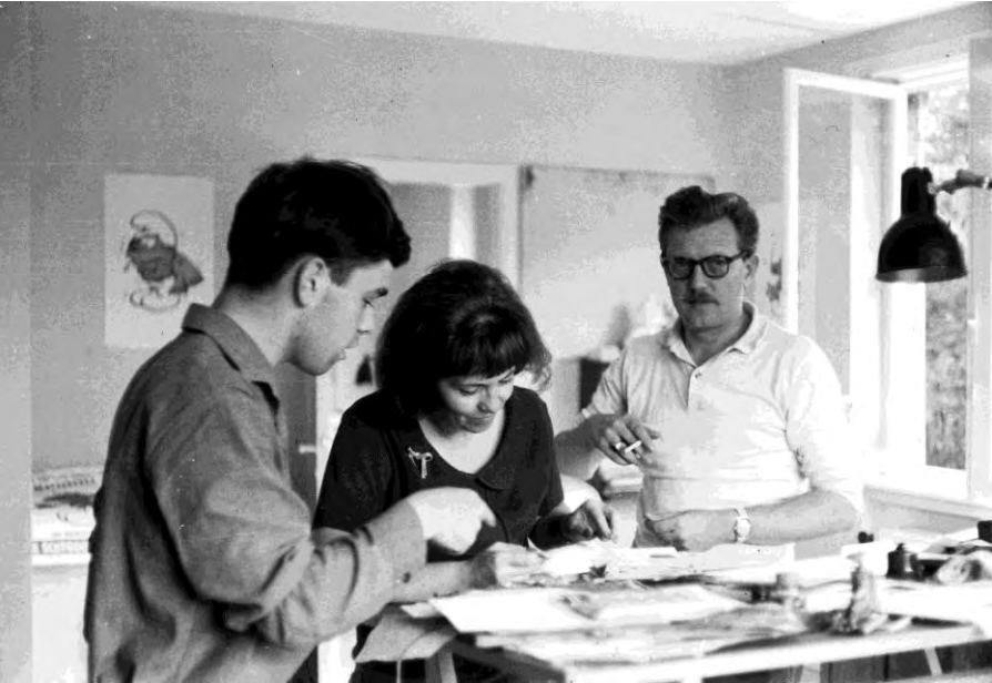 Pour l’aider à schtroumpfer, Peyo a engagé Gos (Roland Goossens) qui, en plus de dessiner admirablement les petits lutins bleus, se révèle un excellent scénariste.