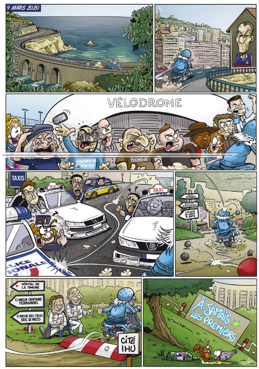 Au-delà du professeur, Dadou rend hommage au tout Marseille. Soprano, Jul, René Malleville et d’autres font office de figurants de luxe. Les clins d’œil à la cité phocéenne sont pléthore. Nul besoin d’être du cru pour les apprécier, même si les locaux en verront certainement beaucoup plus que les autres. Les politiques nationales et internationales en prennent également pour leurs grades. Bolsonaro, Trump et Johnson n’ont rien à envier à Macron et sa team.