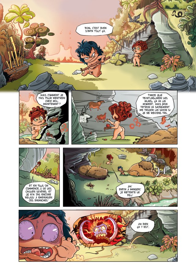 Ne cherchez pas à vous faire des noeuds au cerveau ! Le Petit Derrière de l’Histoire n’a pas du tout la prétention d’être une BD qui cherche à révolutionner le monde du Neuvième Art. Marie, jeune femme ouverte sous tous rapports, se retrouve catapultée aux temps préhistoriques dans le lit malodorant d’un homme des cavernes. Elle comprend vite qu’elle est victime d’un mauvais tour : la voilà assimilée à un cobaye pour la machine à remonter le temps que son amant d’un soir se vantait d’avoir inventée. Comment se sortir de là ? Bon gré mal gré, elle tente de s’adapter à son nouvel environnement selon ses besoins de femme moderne : créer des peintures sur les murs pour s’occuper, et surtout faire du feu pour éviter de mourir gelée. Une fois la déco de la grotte refaite et le feu maitrisé, Marie repart aussitôt dans les couloirs du Temps. Destination : le lit des grands inventeurs !