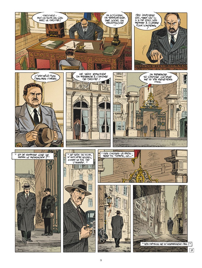 Les deux auteurs s’associent pour nous immerger dans l’entre-deux-guerres et plus précisément dans les méandres d’une organisation terroriste visant principalement à discréditer le gouvernement, ainsi que le communisme. Sous la présidence d’Albert Lebrun, Léon Blum est le chef du gouvernement. A l’extrême-droite, les ennemis sont prêts à tous les crimes pour faire leur révolution. Des ministres et des truands, des flics et des putes, tous battent le pavé parisien entre les manigances, les complots et les crimes. Les personnages réels apportent une crédibilité aux acteurs de fiction, nécessaires pour raconter une histoire permettant de happer le lecteur.