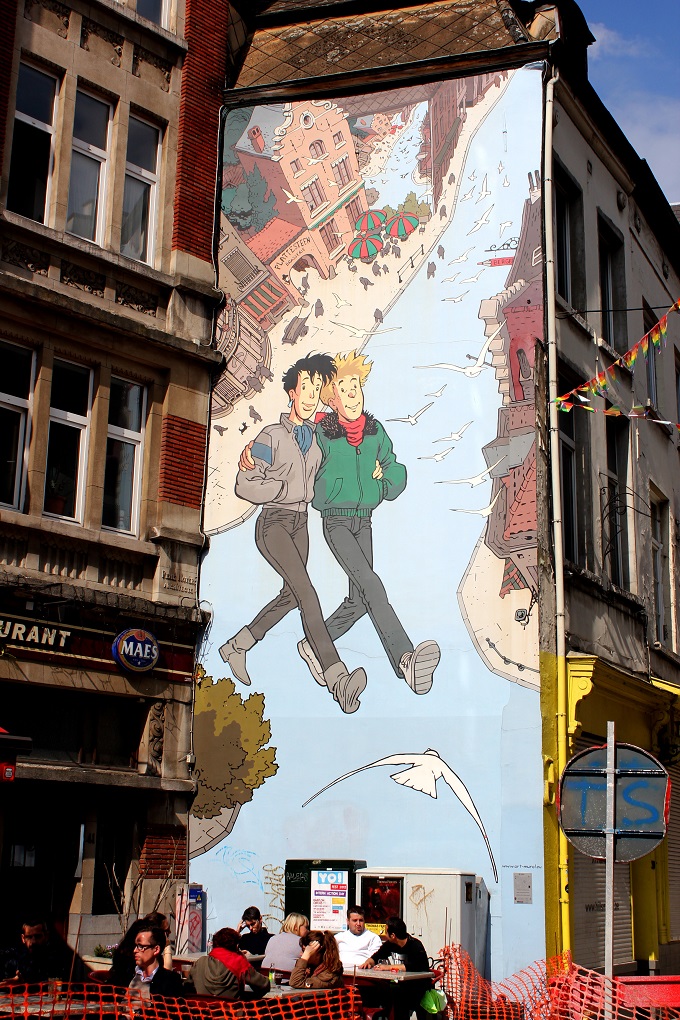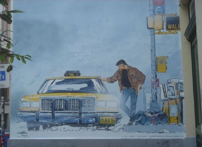 C’est dans ce contexte qu’a été réalisée la première fresque BD. Il s’agit du personnage Broussaille du Bruxellois Frank Pé dans le quartier Plattesteen. L’initiative était belle : croiser l’art et la rénovation urbaine, et a permis de consacrer dans un premier temps quelques auteurs bruxellois sur les murs de la capitale.