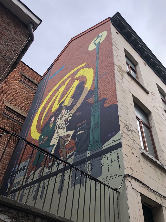 Après avoir disparu pendant plus de deux ans, la fresque hommage à Blake & Mortimer et à la Marque Jaune vient de vivre sa troisième naissance. Elle est désormais située rue du Temple, à deux pas de la maison natale de son créateur E.P Jacobs, 5 rue Ernest Allard.
