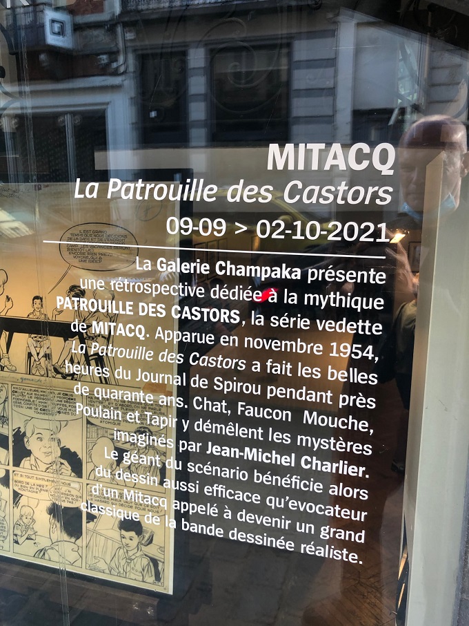 Poulain, Chat, Lynx, Faucon, Mouche et l'inégalable, le Gaston de la patrouille, Tapir, bref la célèbre Patrouille des Castors revient pour une expo, 80 planches des 20 premiers albums chez Champaka ... jusqu'au 2 octobre ! Une occasion unique d'admirer ce grand maître qu'était Mitacq.