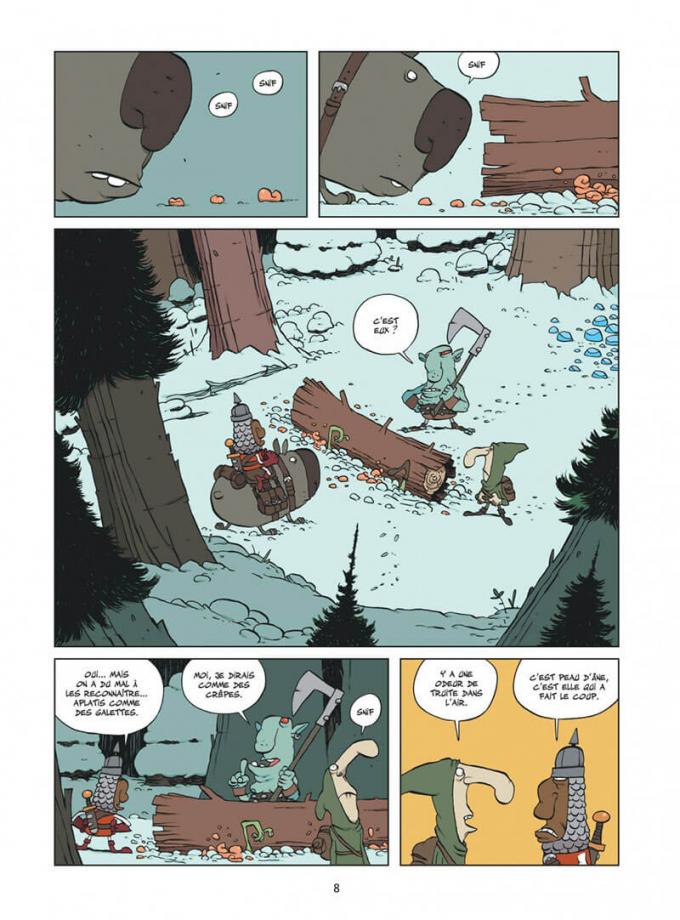 Tebo dynamite une nouvelle fois le monde moyenâgeux des contes de fées. Alors que l’on pouvait penser le genre éculé, il propose une nouvelle variation, une symphonie jubilatoire de 7 à 77 ans. Selon les codes que possèdera le lecteur en fonction de son âge, il appréciera le récit à diverses valeurs, mais dans tous les cas y trouvera son compte et son conte. Le troll Olrikiki n’a qu’à bien se tenir. Quant à la peau d’âne qui se trouve sur le dos de la princesse, ne serait-ce pas celle du compagnon de Shrek ? Symboliquement, avec tout le respect qu’on lui doit, l’ogre grossier est renvoyé dans ses retranchements.