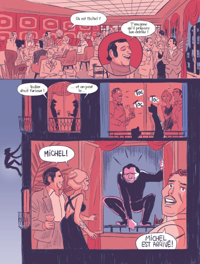 Le Quellec organise l’histoire de la vie de Michel Magne de manière passionnante. Si l’album commence par la rencontre avec celle qui deviendra sa muse, tout le passé du musicien est raconté dans des chapitres intercalés illustrés et richement iconographiés qui se lisent avec fluidité et qui permettent de comprendre comment un gamin de Lisieux est devenu, bien avant Eddie Barclay, celui chez qui il fallait venir travailler et festoyer, l’un n’allant pas sans l’autre.