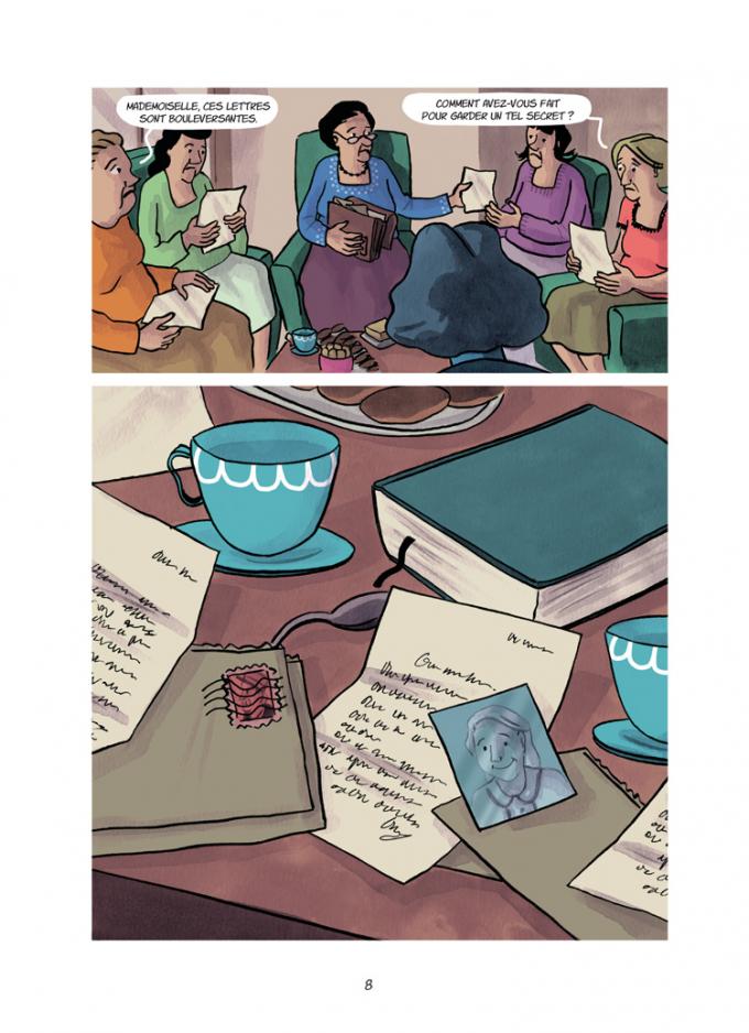 Thibaut Lambert, après son sensible et drôle L’amour n’a pas d’âge, illustre l’histoire de Louise avec une simplicité cruellement efficace. On ne peut s’empêcher de rapprocher cet ouvrage de l’extraordinaire série Irena chez Glénat, racontant dans un graphisme « enfantin » l’histoire d’Irena Sendlerowa qui sauva plus de 2500 enfants juifs du ghetto de Varsovie. Les dessins issus de photos sont d’une grande émotion et l’on ne peut s’empêcher d’avoir une larme au coin de l’œil lorsque, une fois la bande dessinée terminée, le visage de Louise ouvre le dossier complémentaire dans lequel les photos des lettres retrouvées sont reproduites.