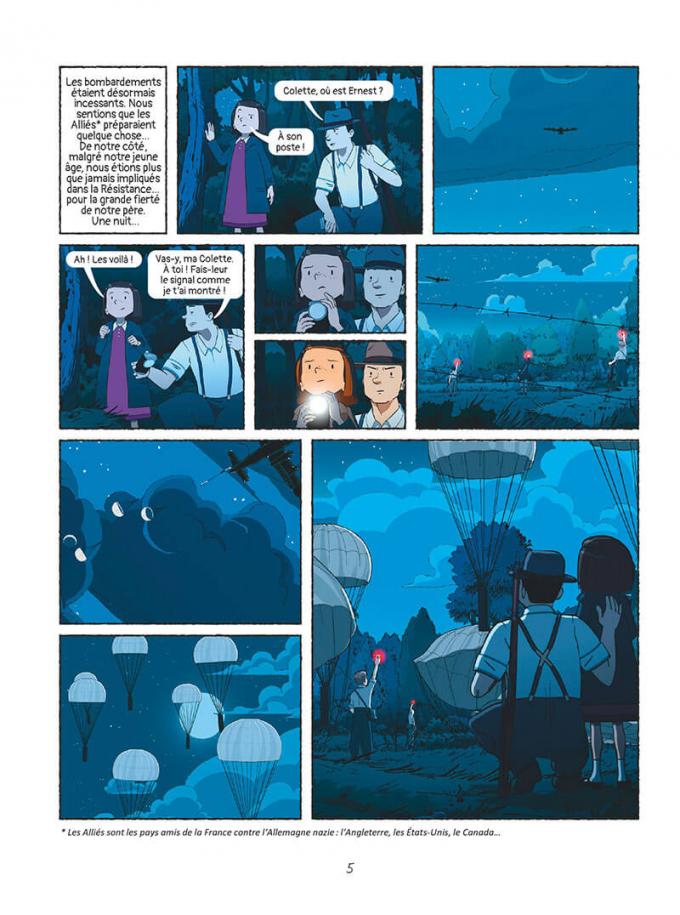 En fin d’album, la chronique « C’est arrivé en vrai… » réalisée par la journaliste Pascale Hédelin est un complément documentaire pour découvrir et comprendre l’Histoire de France pendant la Seconde Guerre Mondiale. Avec des articles courts et précis, c’est un petit supplément très instructif très utile, en particulier pour les enseignants. Le débarquement, la mode américaine, les camps de la mort, la libération, la fin des nazis : tout est explicité avec des mots simples et précis.
