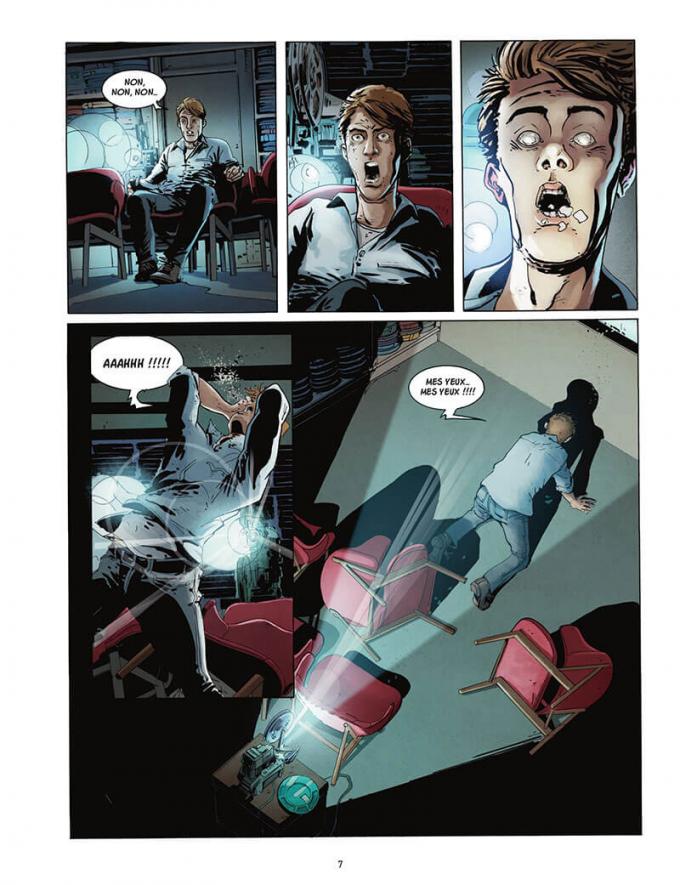 Sylvain Runberg adapte le roman de Franck Thilliez. Le scénariste confirmé à la centaine d’albums s’est déjà attelé à l’exercice avec la fameuse saga Millenium de Stieg Larsson chez Dupuis. S’attaquer à un thriller de Franck Thilliez n’est pas chose plus aisée. Le polar aux rouages complexes paraissait difficilement transposable, notamment concernant la schizophrénie de Sharko. Si on se laisse avoir au début par le personnage de la jeune fille au tee-shirt rose flanqué d’un smiley sanglant, on se rend compte de son immatérialité et le mystère demeure jusqu’à la fin quant à savoir s’il s’agit de la fille du policier ou pas.
