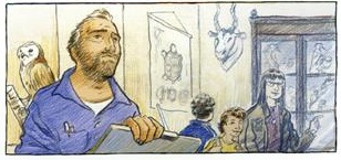 Dans un style réaliste cousin de Christian Lax, A.Dan invite le lecteur à se concentrer sur le catalogue des collections dont il reproduit des pièces choisies avec précision, minutie et vie. Quel paradoxe pour des fossiles, des pierres, des insectes, des os ou des animaux empaillés. L’auteur nous donne l’impression de toucher ces reliques.