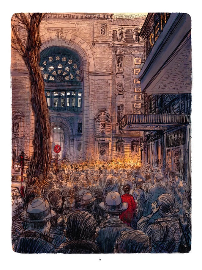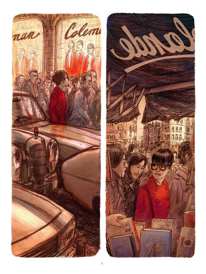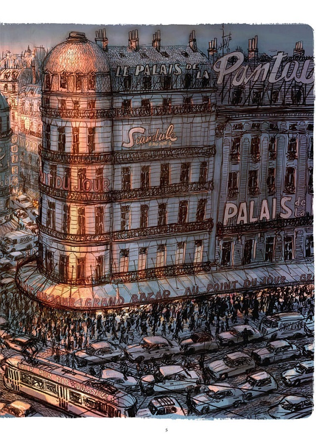 Son regard habitué à la narration visuelle, aux décors urbains, à la peinture transperce à travers chaque page.