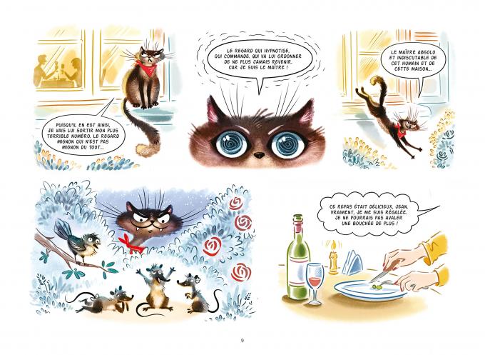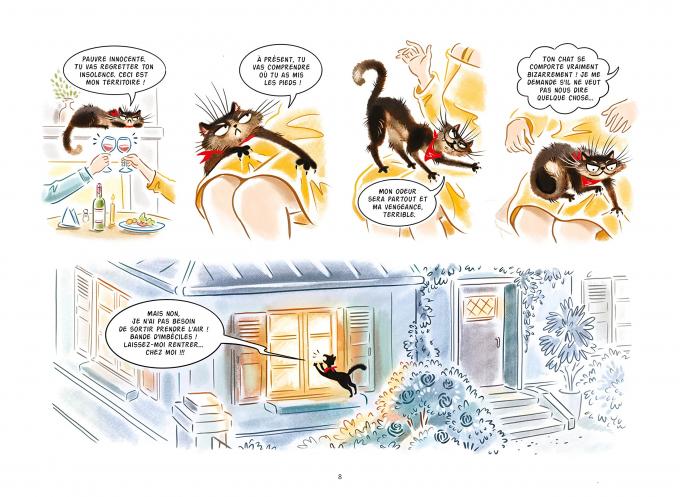 - Je suis tellement heureux que vous ayez accepté mon invitation, Emilie ! Permettez-moi de vous présenter Minou, mon chat. Bien sûr, comme tous les chats, il est persuadé que cette maison lui appartient. Et que c’est moi qui suis… son humain. En fait, je suis certain qu’il considère que nous sommes sur son territoire et qu’il n’est pas content du tout.