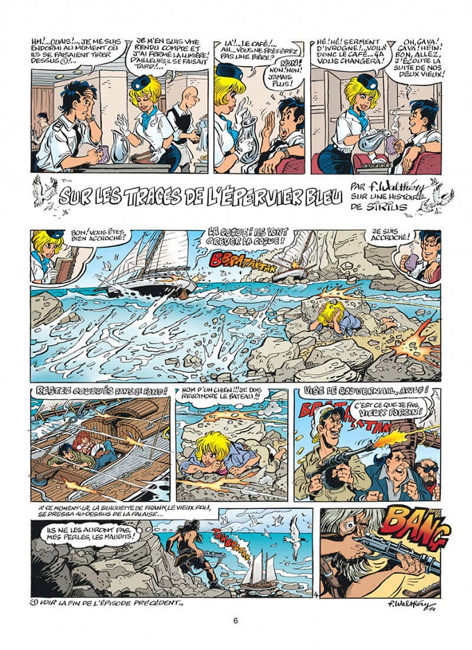 Avant tout, L’Epervier Bleu et sa suite sont une manière de remettre sur le devant de la scène l’homme à l’origine du scénario, Max Mayeu, dit Sirius. Sirius était un auteur complet qui a fait les beaux jours des éditions Dupuis et du journal de Spirou avec des séries comme Bouldaldar, Timour ou encore l’Epervier Bleu, sorte de cousin de Bob Morane, parcourant le globe, vivant des aventures hors du commun.