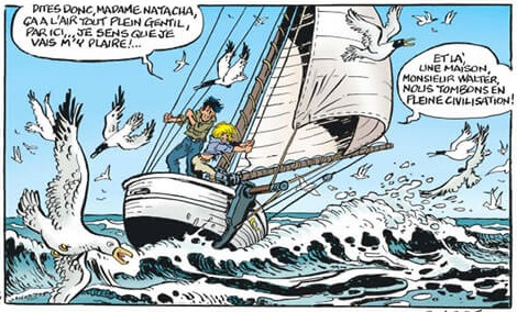 La première partie de l’histoire était essentiellement maritime. Celle-ci nous entraîne dans les tréfonds de la jungle de Nouvelle-Calédonie. Walthéry est aussi performant dans chacun des décors. C’est un dessinateur à la fois aérien (on le savait), maritime et végétal.
