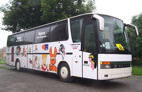 A l'occasion des « 3e Rencontres internationales de la BD en Brabant wallon » qui se dérouleront les 18 et 19 octobre 2008 et dans le cadre du partenariat établi entre la Ville d’Ottignies Louvain-la-Neuve et la Maison du Tourisme des Ardennes brabançonnes, de nombreux auteurs bd étaient venus " décorer" ce 5 juin 2008 un bus nommé le BD-Bus.