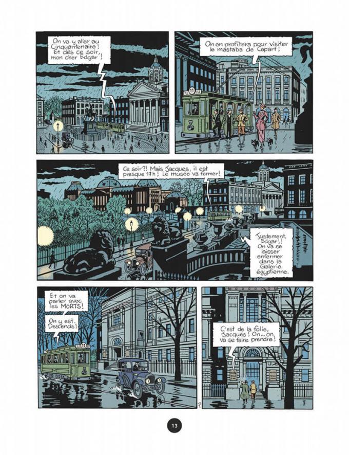 1921, Edgar Pierre Jacobs et son ami Jacques Van Melkebek prennent une bière chez Leopold à Bruxelles. Les temps sont durs pour les deux jeunes hommes à la recherche d’entrées d’argent régulières. Jacques est passionné de dessin. L’Académie Royale des Beaux-Arts est faite pour lui. Quant à Edgar, il rêve d’opéra. Chanter sur scène, voilà son destin. Mais Edgar est passionné par tous les Arts, que ce soit les Arts antiques qu’il admire dans les Musées ou les arts graphiques. Rattrapé par son talent dans ce dernier domaine, à la faveur de rencontres, son destin l’amène vers le dessin. Edgar passe de l’art lyrique au dessin publicitaire et à l’illustration. 1941, Jacques lui présente un certain Hergé, qu’il assistera. 1942, la guerre empêchant les planches des auteurs américains d’arriver en France, Jacobs se verra proposer de remplacer Alex Raymond. Ainsi naîtra Le rayon U. 1946, c’est avec la naissance du journal Tintin que Blake et Mortimer font leur apparition dans Le secret de l’Espadon.
