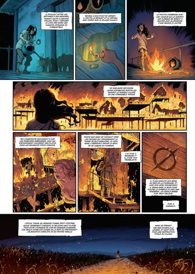 Si Gihef a distingué les deux époques de la narration par deux modes distincts, il est dommage que Dominici n’ait pas fait de même graphiquement, soit en adoptant pour les scènes avec Maek un style graphique différent, soit avec un traitement colorimétrique particulier (sépia par exemple) ou, encore mieux, avec un type de découpage spécifique.