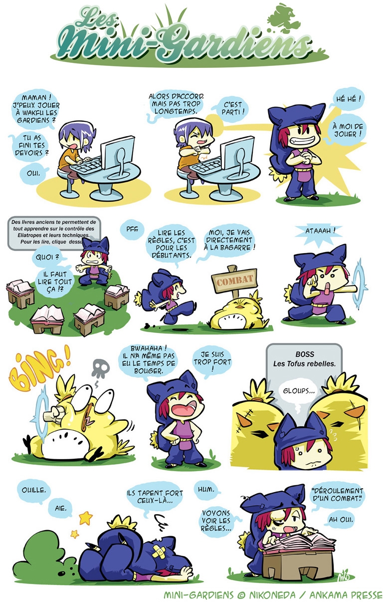 Découverte en images des coulisses de leurs vies… Nikoneida propose dans cette bande dessinée d’explorer l’envers du décor du jeu en ligne Wakfu Les Gardiens.