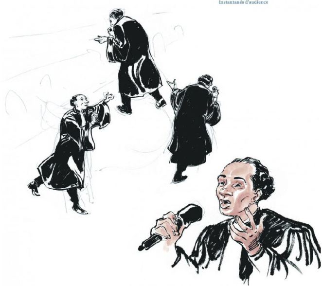 Côté dessins, faut-il encore présenter François Boucq? Prolifique auteur, il avait déjà gagné sa place dans la postérité du Neuvième Art bien avant son Grand Prix du Festival d’Angoulême en 1998. Boucq, il dessine à perdre haleine, il fait mouche à chaque fois. Dans sa loufoquerie comme dans son hyper-réalisme. C‘est un dieu vivant qui n’a jamais eu peur des exercices de style. En voilà un autre d’ailleurs: se retrouver au tribunal et dessiner le procès, les personnes qui en sont les acteurs; accusés, plaignants, procureur, juges… Et ça n’a rien d’évident, encore faut-il éviter les écueils de la caricature! On n’est pas la pour rigoler, il faut être sérieux, encore plus dans ce procès qui a brisé les carrières et les vies de quelques-uns des quatorze prévenus. Et Boucq ne réussit que trop bien à exprimer tout ce qu’il peut se passer lors d’un tel procès où les salubrités sont mises en jeu. Il y a une telle vivacité, un tel dynamisme dans ces comptes-rendus dessinés qu’on s’y croit. Voilà une nouvelle preuve de l’importance du crayon pour donner à voir les secrets, les ombres, les recoins, toutes ces choses qui n’invitent ni caméra ni appareil photo. Un monde dans lequel règnent les dessinateurs qui, à coup d’instantanés crayonnés, reconstituent un monde réel, et bien différent que celui attendu, imaginé et fantasmé.