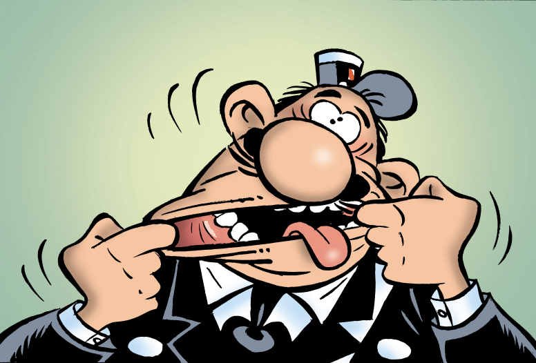 Tout au début, les planches ne sont pas parues en album, il était maigre. Dans la première histoire, il était tout maigre. C’était un personnage qui n’avait pas encore sa personnalité. Et puis, il n’était pas si grand, il était assez petit. C’est un peu plus tard dans le premier album qu’il est devenu très gros. Mais j’avais un problème de place dans mes cases. Quand je mettais deux personnages en gros plan, avec le ventre qu’il avait, je n’avais pas de place pour l’autre personnage, donc je l’ai fait maigrir. Ensuite, il a un peu regrossi, mais je crois que maintenant il a pris un poids de croisière. Ça vient tout seul, c’est inconscient. On change des choses et les personnages changent un peu forcément. On ne s’en rend pas compte.